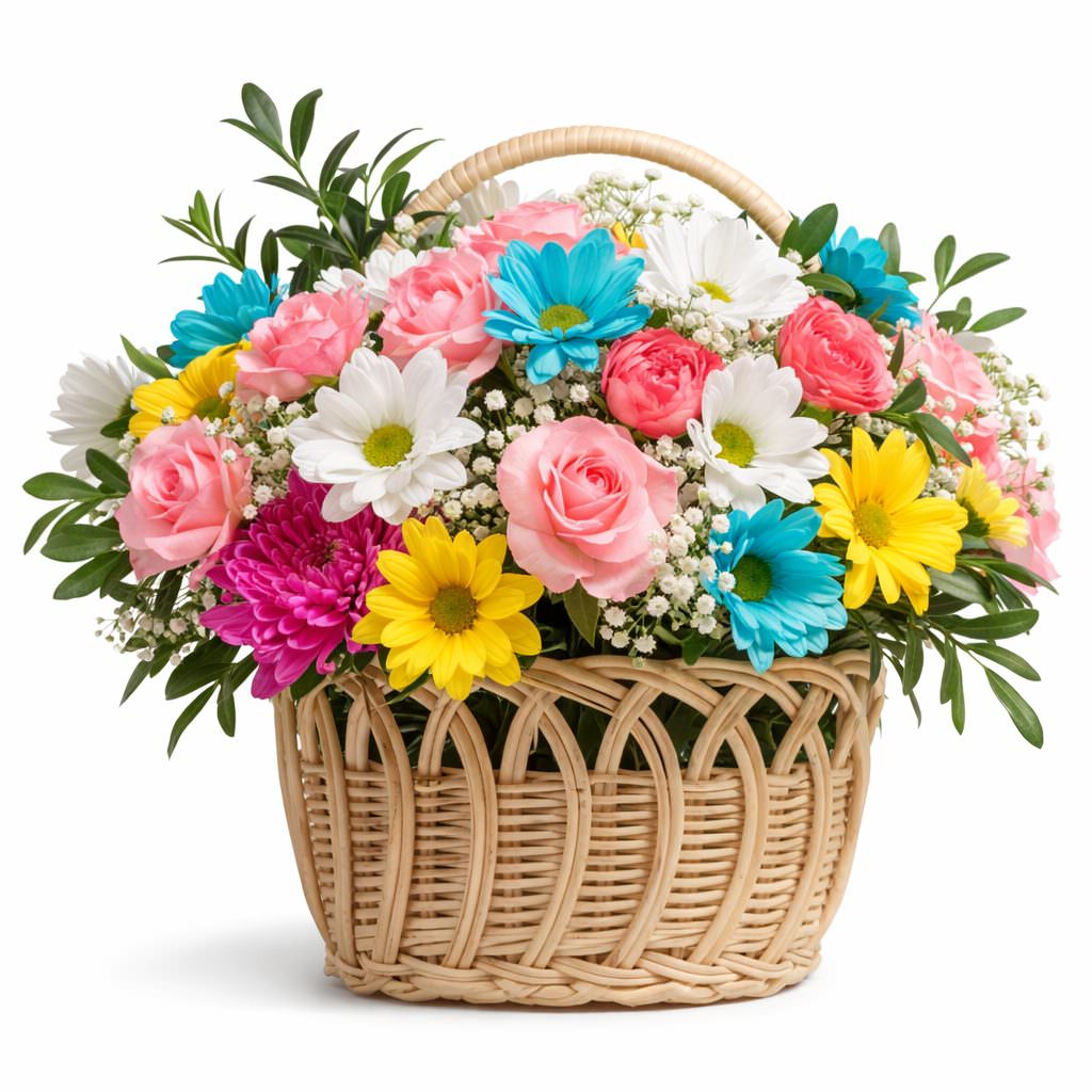 Корзиночка с цветами «Радужный сон» с гарантией качества, цены и быстрой доставки!